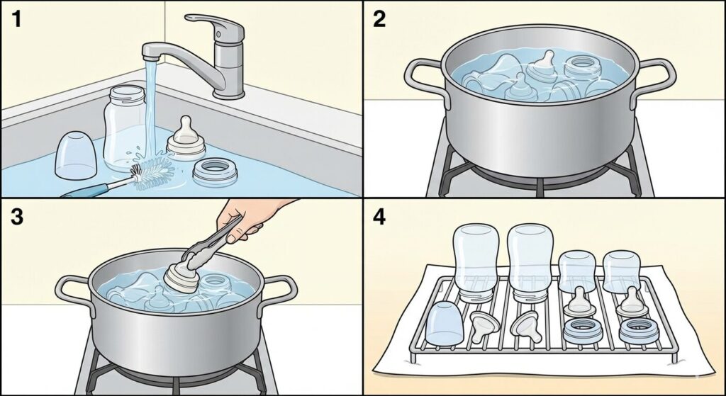1. 【煮沸消毒(鍋)】時間と火の番が最大の壁:★☆☆☆☆