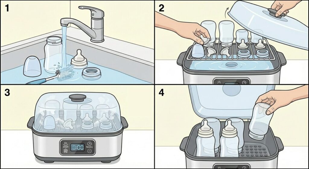 4. 【スチーム(電動・乾燥機能付)】消毒の「完全自動化」:★★★★☆