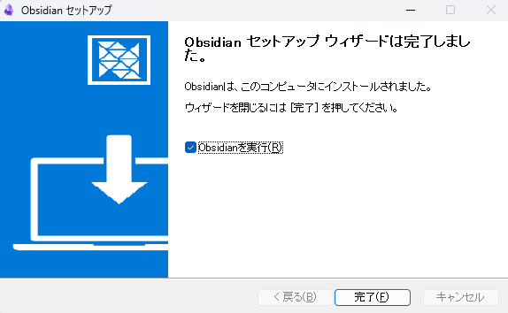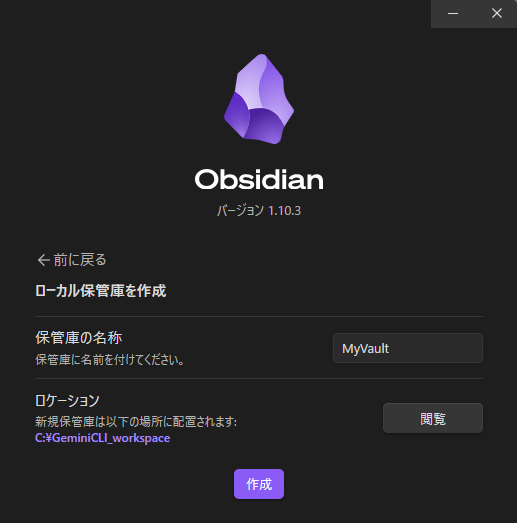 保管庫というのは、Obsidianのノートを保管しておくフォルダのことです。ここで指定した場所に、ノートが保存されます(ノート一つにつき、.mdという拡張子のファイルが作成されます)。