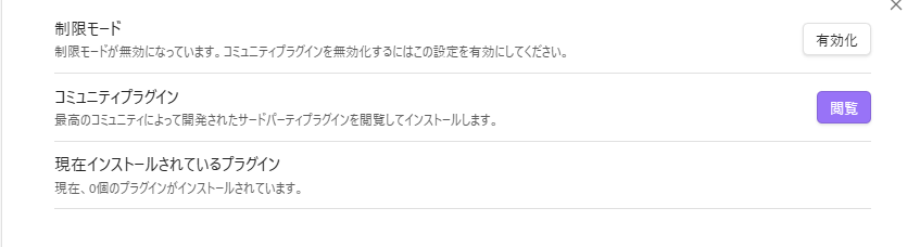 続いてコミュニティプラグインの右側にある「閲覧」をクリックします。