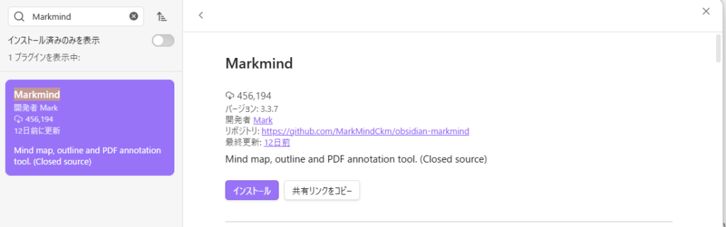 今回はマインドマップツールとして使えるようにするプラグインをインストールしますが、それ以外にも便利な物が沢山あります。