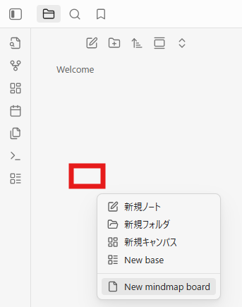 その下の適当な場所を右クリックして、「New mindmap board」をクリックしてください。