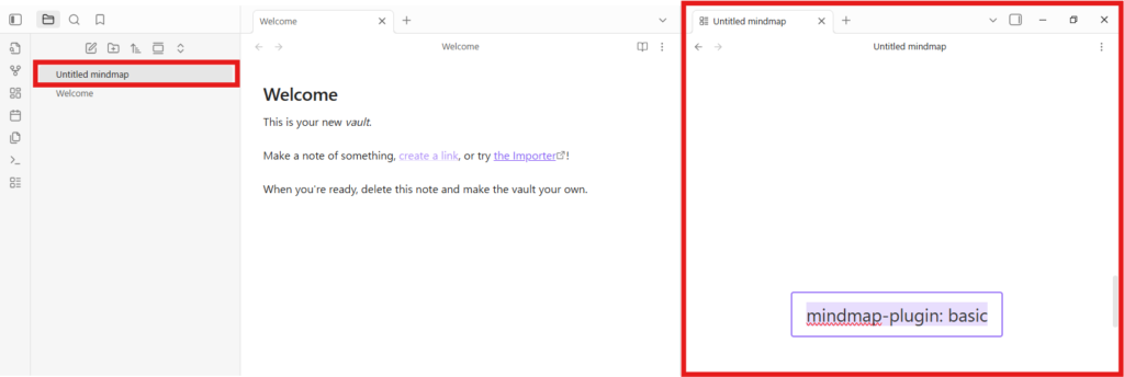 以下の赤枠のように、”untitled mindmap”というノートが作成されました。