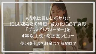 家事の省力化 時短・省力化に必ず貢献 「プレミアムウォーター」を4年以上使った正直レビュー 使い勝手は?料金は?解約は? プレミアムウォーターを4年使っている私が実体験を踏まえてプレミアムウォーターのメリット・デメリットを解説します!今まで使ってきた経験からの赤裸々な料金シミュレーションや不便を感じた点、それでも使い続けている理由をお伝えしています。ウォーターサーバーの契約を検討している方、あと一歩決め手がほしいという方はぜひご覧ください。 2025.11.16 家事の省力化